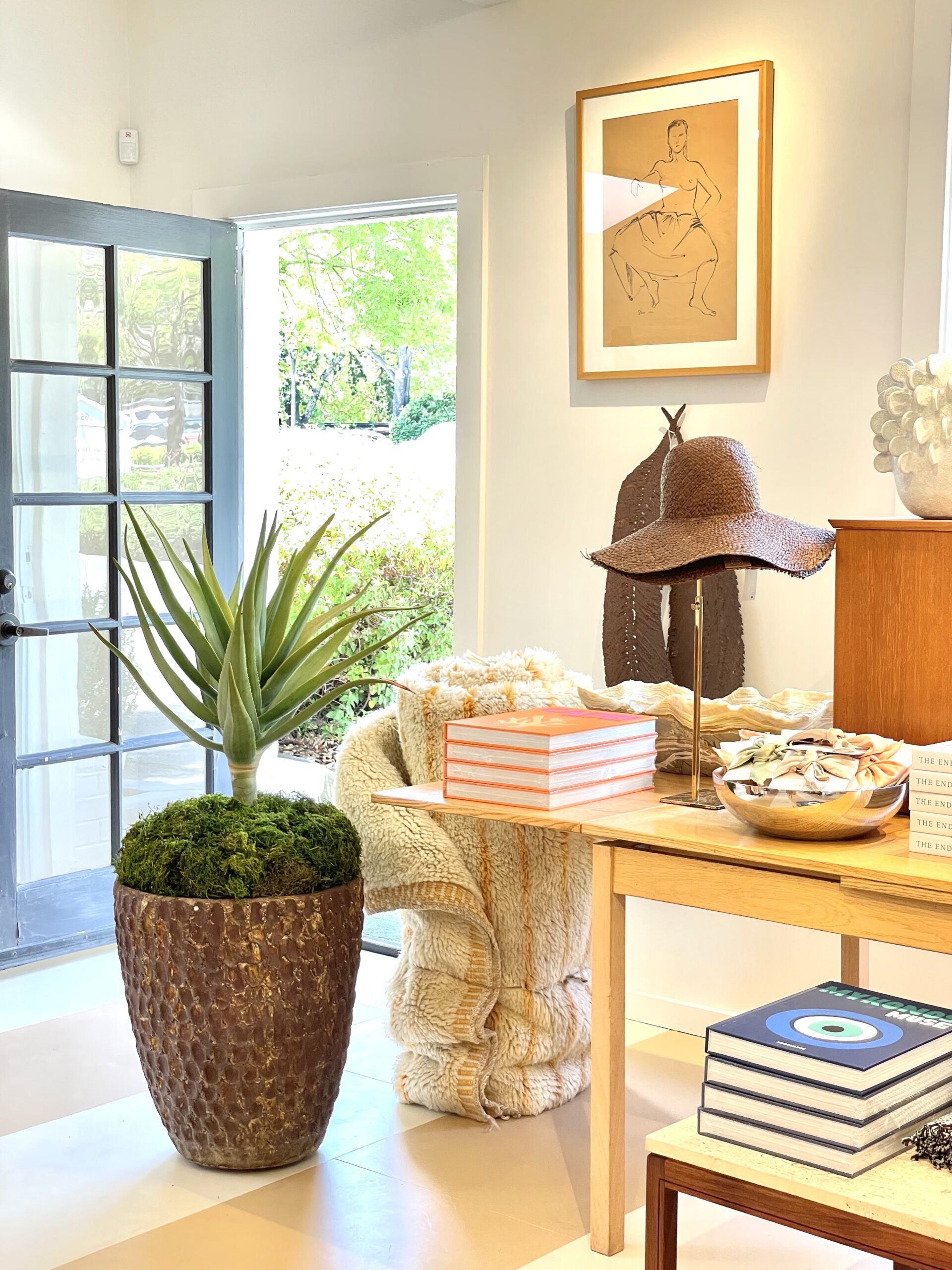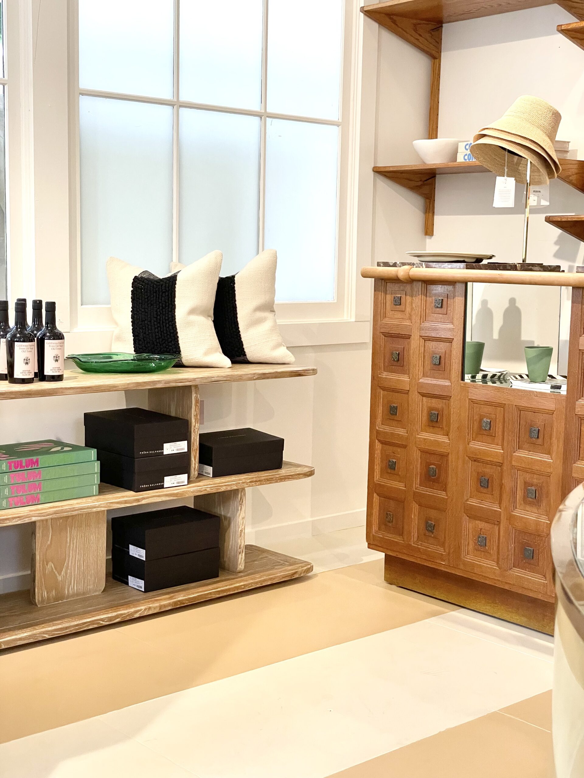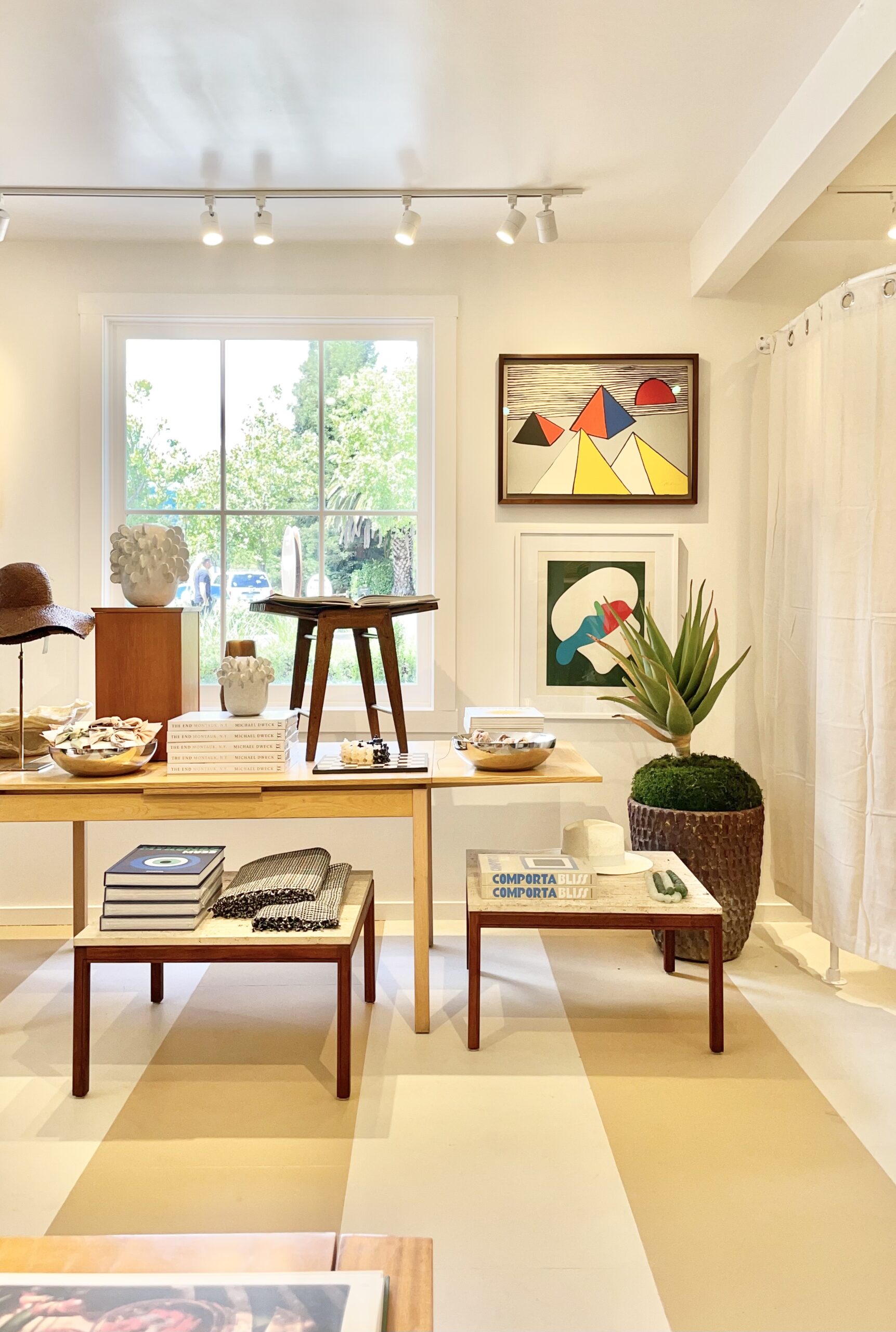 Lindsay and Raan Parton of Alchemy Works and I met when they procured a number of vintage furniture pieces from my collection for their store in Colorado. Soon later I became a key holder of all their shops and have been merchandising, styling, and consulting for their new spaces ever since. The goal for their stores is to drive sales by creating interesting and playful layers of merchandise that represent the fresh, airy, and playful coastlines of California. Incorporating vintage, one of a kind, and antique items not only make their spaces look more interesting, they benefits the bottom line as salable items available for purchase. With high levels of traffic and constant families and strollers coming through the stores, designing spaces that are traffic mindful while influencing discovery and intimacy is crucial.