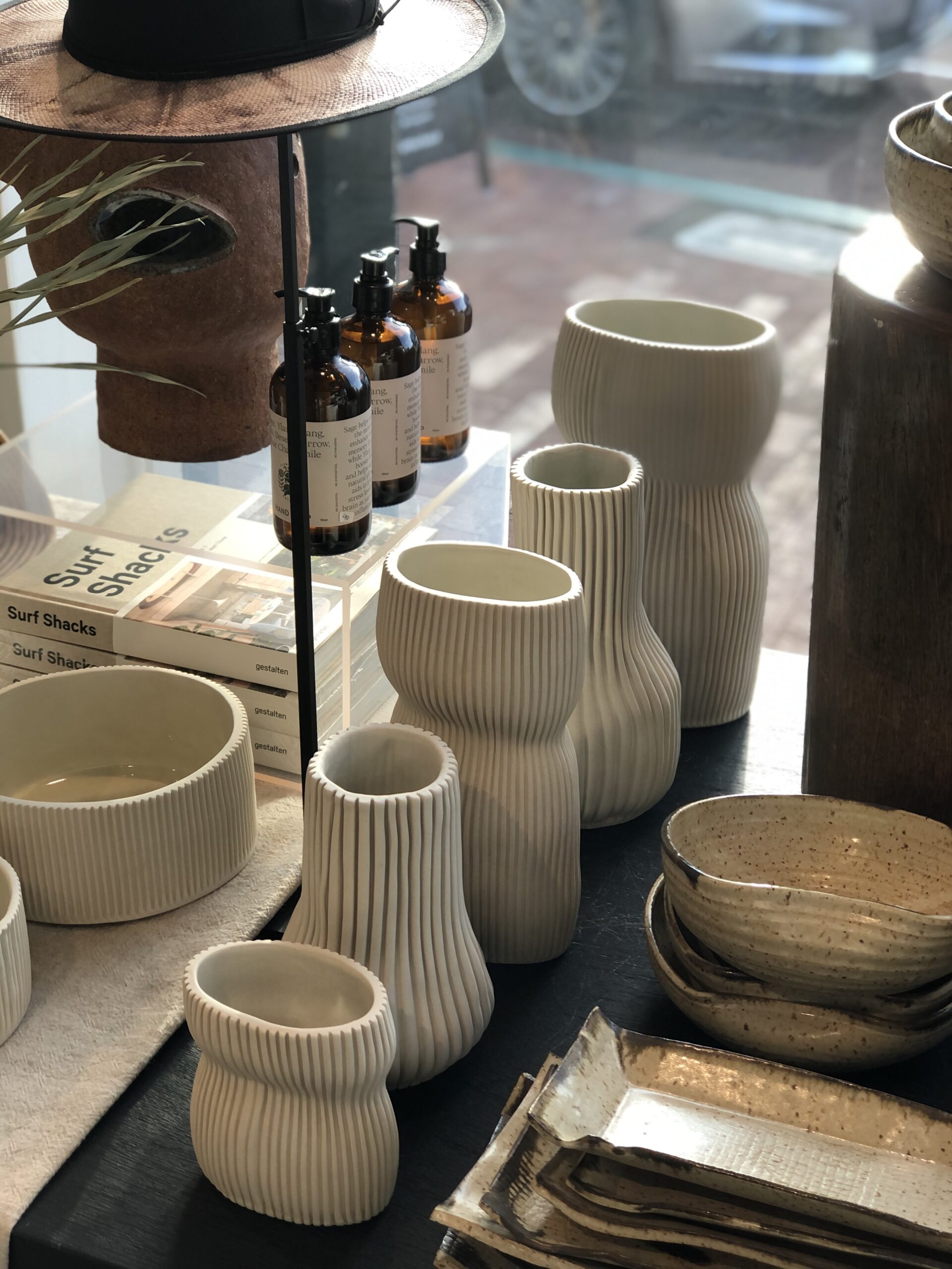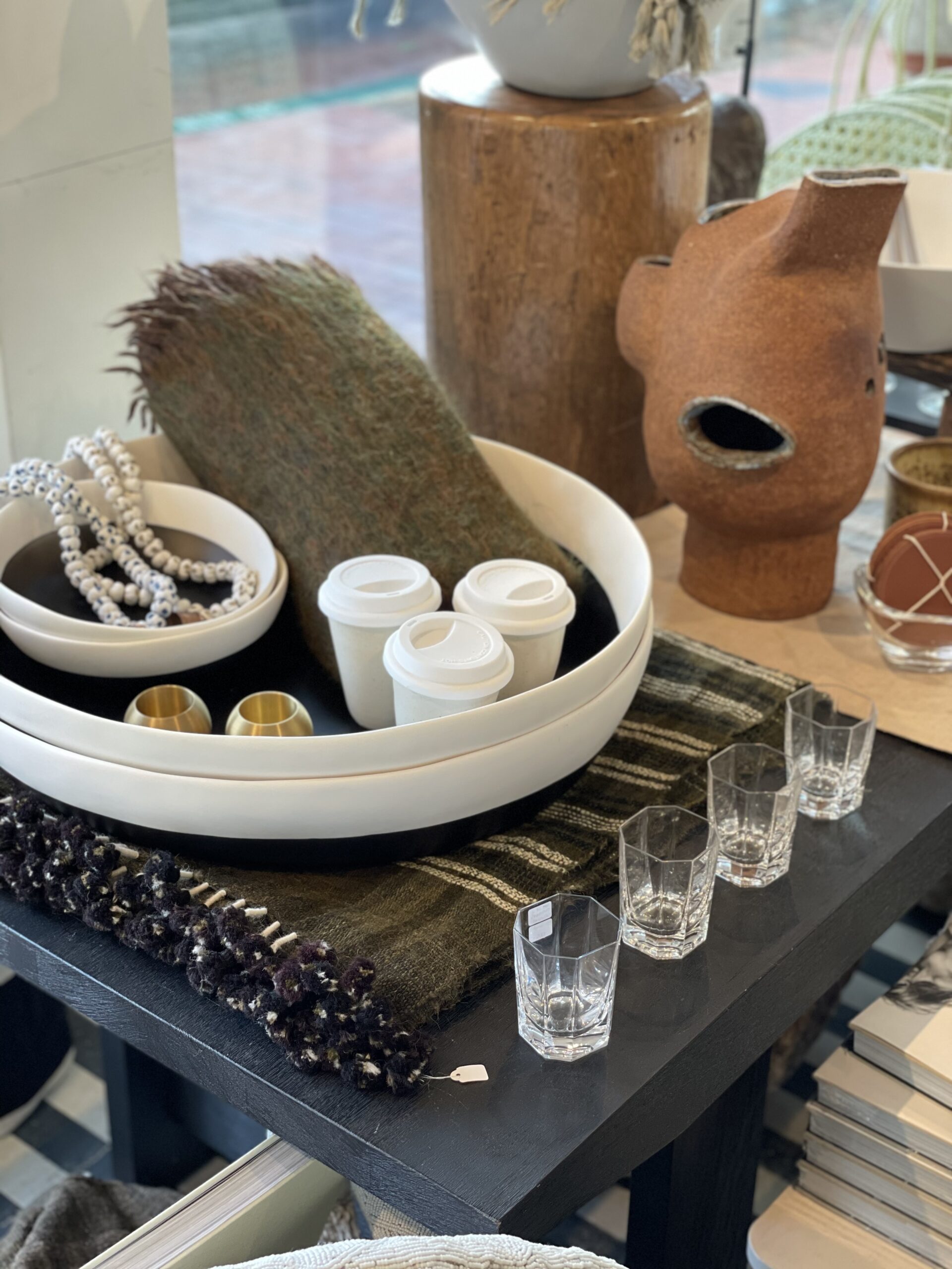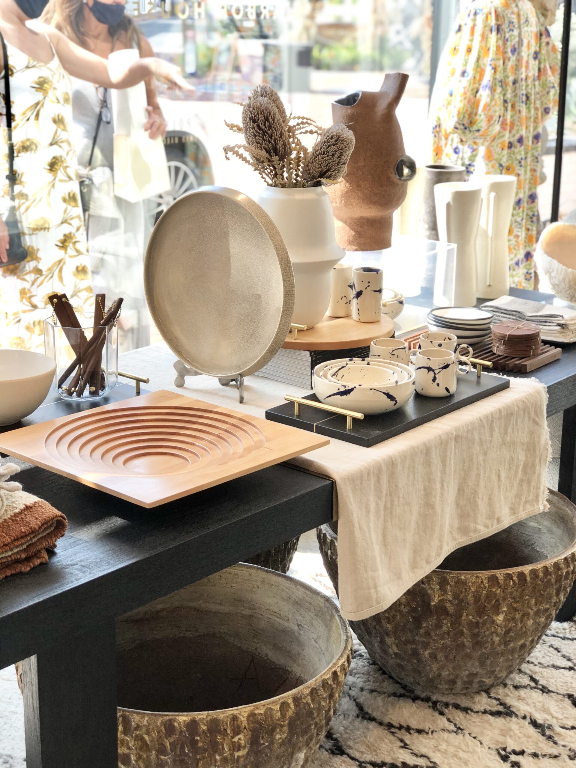Lindsay and Raan Parton of Alchemy Works and I met when they procured a number of vintage furniture pieces from my collection for their store in Colorado. Soon later I became a key holder of all their shops and have been merchandising, styling, and consulting for their new spaces ever since. The goal for their stores is to drive sales by creating interesting and playful layers of merchandise that represent the fresh, airy, and playful coastlines of California. Incorporating vintage, one of a kind, and antique items not only make their spaces look more interesting, they benefits the bottom line as salable items available for purchase. With high levels of traffic and constant families and strollers coming through the stores, designing spaces that are traffic mindful while influencing discovery and intimacy is crucial.